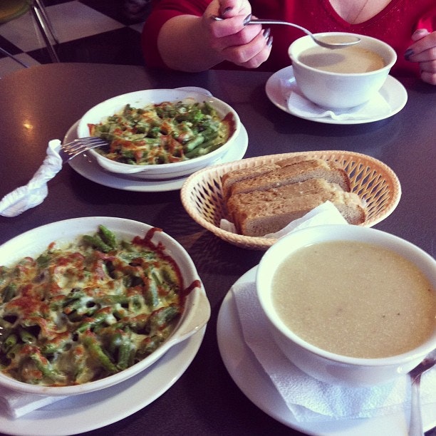 Найти столик у окна и с удовольствием разглядывать людей ))